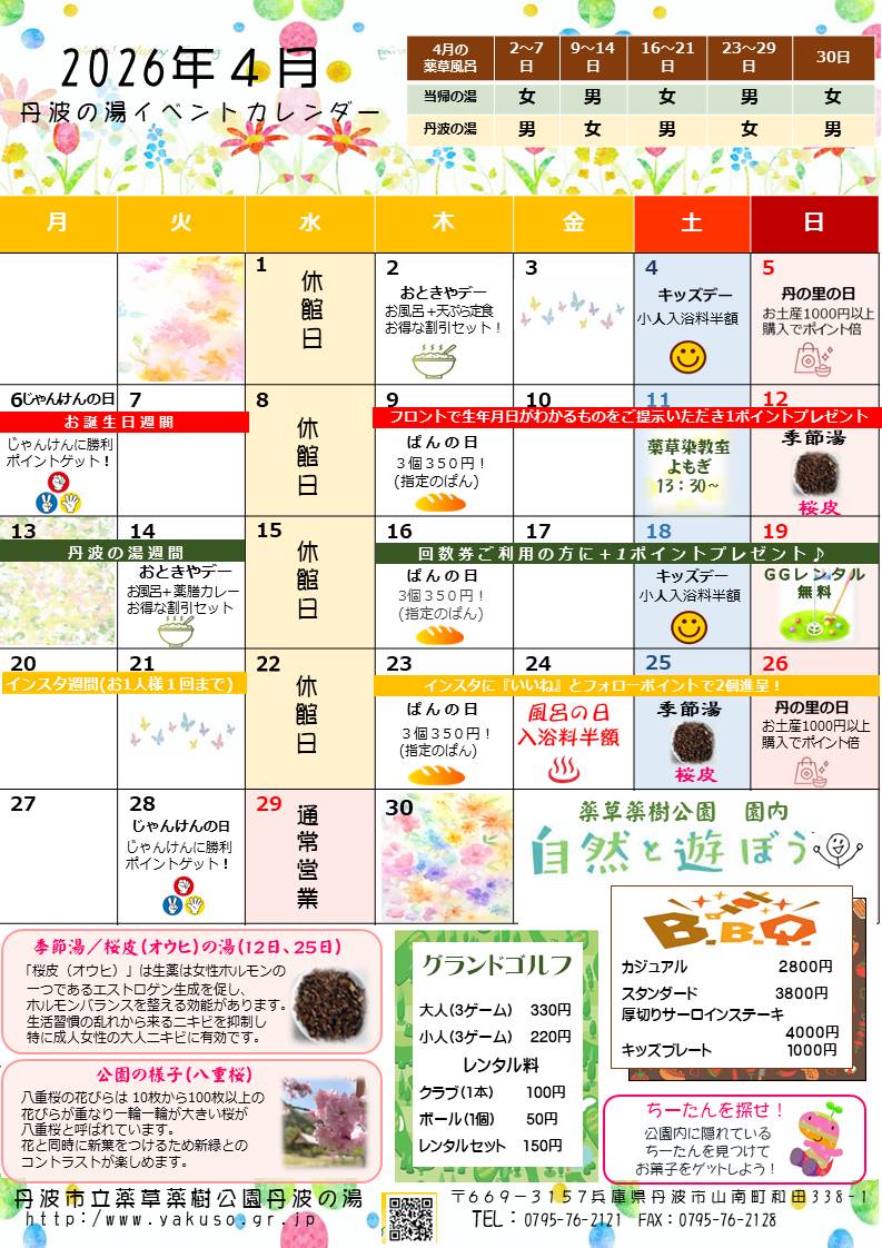 4月のイベントカレンダーです!